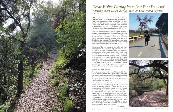 Spring is here and the time is right for walking all over South County! From easy, flat, paved paths to mountainous, unpaved, and more challenging trails, there ' s something out there for every kind of walker. Whether you prefer literally stopping to smell the flowers or keeping your eyes fixed on the summit ahead and the valley views below, there ' s a walk that ' s just right for you.