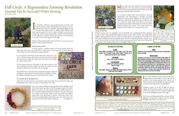 Zoe Davis holds a B. A. in Chemistry, a Ph. D. in Microbiology, and completed a Postdoctoral Fellowship in Biochemistry before trading lab benches for garden beds. After years studying microbes in the lab, she moved to Gilroy to work with them in practice— founding Full Circle Farm, a regenerative farm focused on cultivating soil life to grow nutrient-rich produce. The farm uses minimal tillage, cover crops, and lots of mulch to build fertility the natural way. Full Circle Farm offers a CSA with fruit, veggies, eggs, and flowers from April through November and on-farm produce pickups year-round. Learn more at www. fullcirclefarm. eco or follow along on Instagram @ FullCircleFarm _ CA