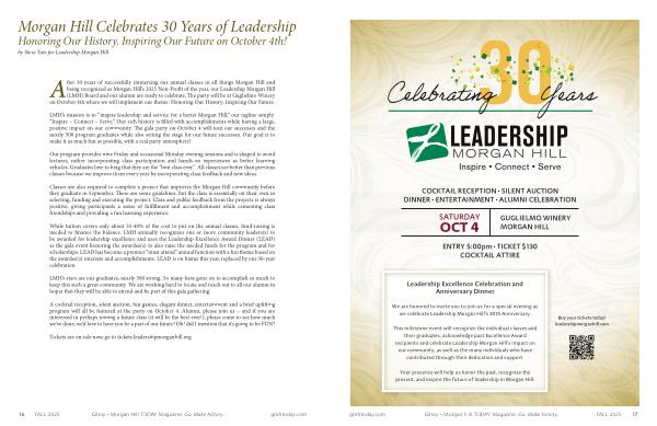 We are honored to invite you to join us for a special evening as we celebrate Leadership Morgan Hill’ s 30th Anniversary.