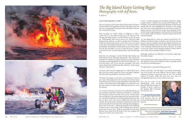 We were staying at the Volcano House Hotel inside Volcanoes National Park on the Big Island of Hawaii. My objective for this trip was to photograph flowing lava from the Kilauea Volcano; but I only had three days.